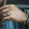 This silver ring remains both simple and original while providing an essential dark touch to enhance a slightly more conformist outfit.