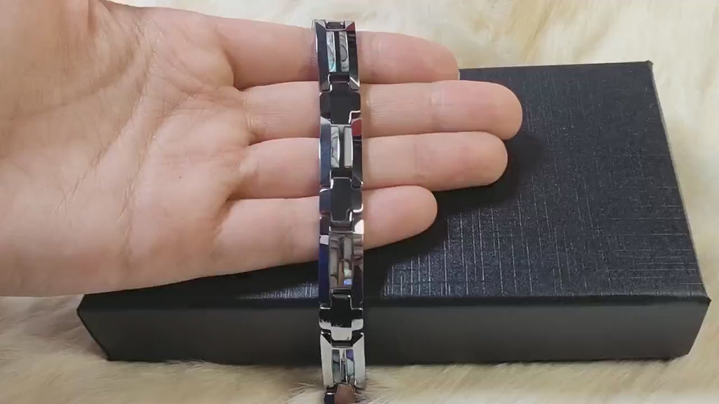 Le Bracelet Luxury Nacre Tungstène allie élégance, style et bien-être. Fabriqué à partir de tungstène de haute qualité et agrémenté de coquille naturelle et d'hématite magnétique, ce bracelet offre une esthétique remarquable ainsi que des bienfaits pour la santé.